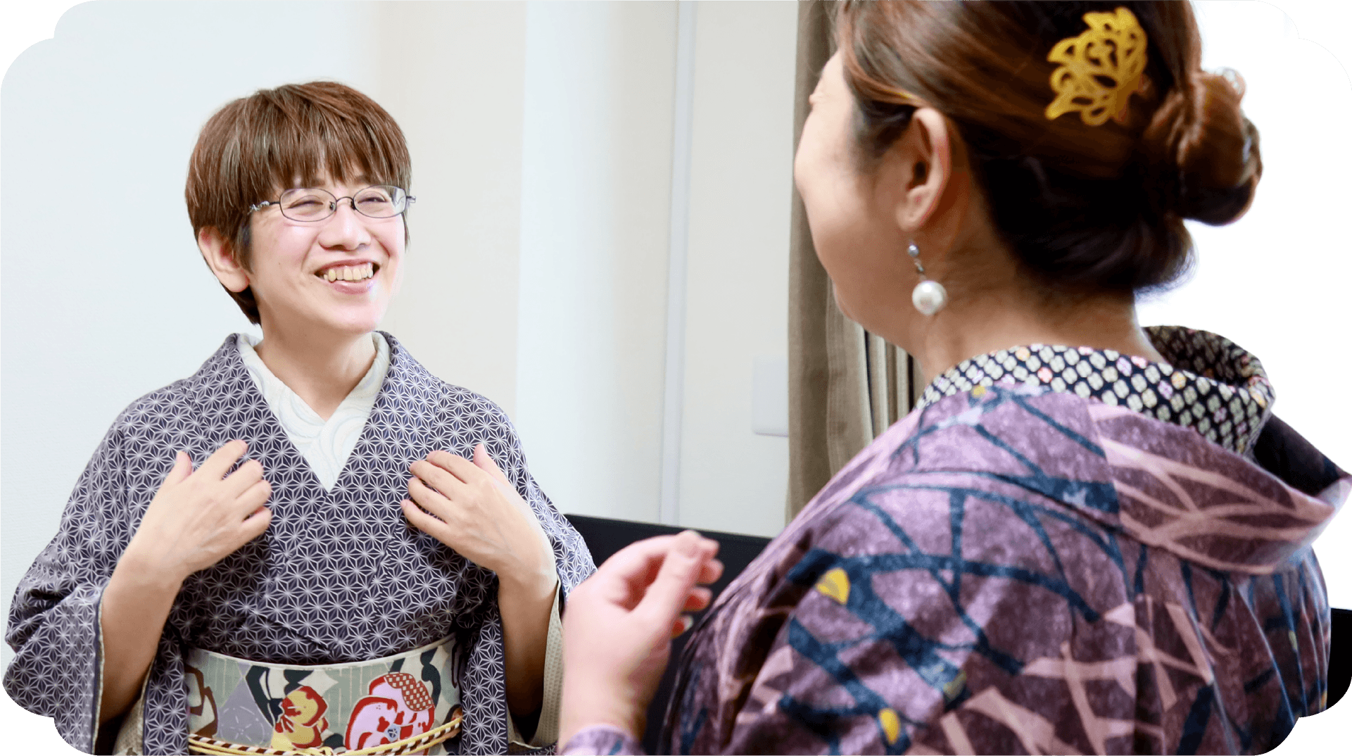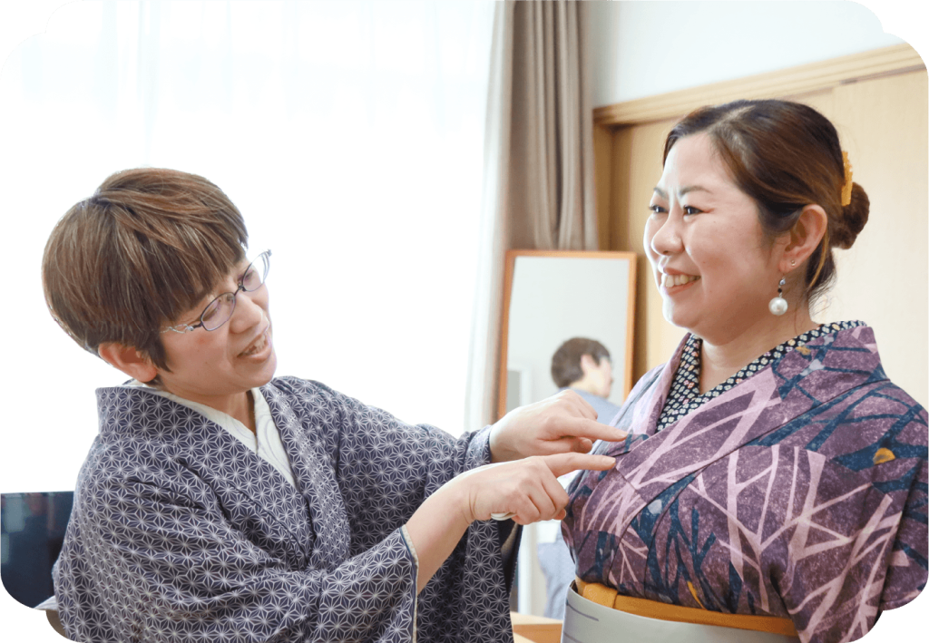 いつも襟がうまくいかなくて気になっていたのですが、長襦袢の着方から教えていただいて襟がきれいに決まるようになりました。